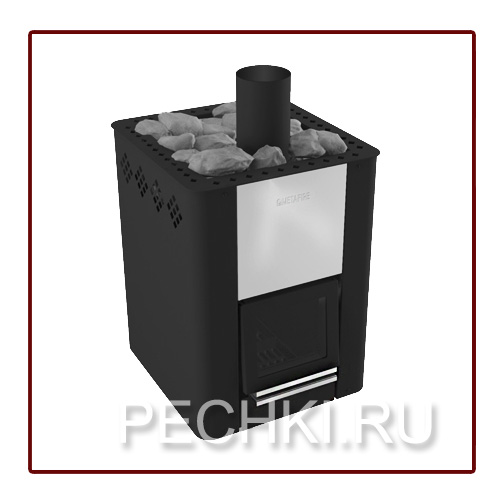 Вместительная вентилируемая каменка прогревается пламенем с нескольких сторон и эффективно нагревает камни. Камни нагреваются до 300 С уже через 1,5-2 часа. За это время парная не успевает перегреться, а раскаленные камни обеспечивают достаточно комфортный и мягкий пар. Кожух-конвектор создает мощный горячий конвекционный поток, равномерно прогревающий парилку, и экранирует жесткое инфракрасное излучение, исходящее от раскаленных стенок топки. В конструкции печи предусмотрен вторичный дожиг газов. Такое решение обеспечивает увеличение температуры сгорания газов, повышение КПД печи, уменьшение расхода дров и снижение вредных выбросов в атмосферу. Удобный зольник является регулятором интенсивности горения. Предусмотрена возможность изменения направления открывания дверки.